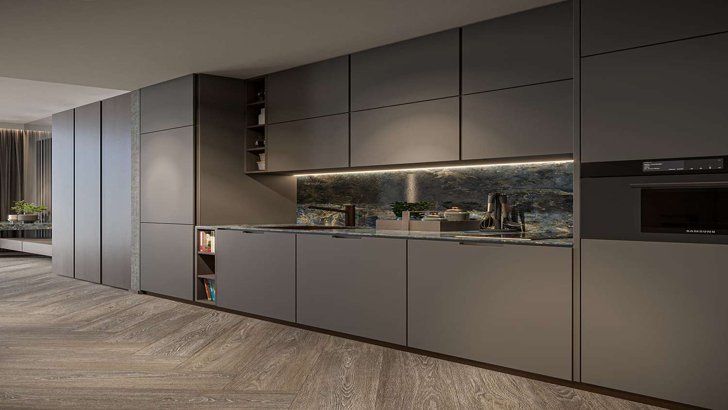 Its meticulously curated space embodies timeless elegance. The interiors of this development evoke new heights of sophistication with a colour palette dominated by sleek shades of grey and calming earthy cool tones, crafting an opulent atmosphere. It features exquisite marbles and stones that elevate each space to an art form, creating an aesthetically contemporary charm.